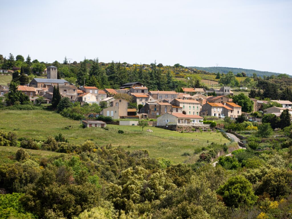 Vue aérienne du village du Mas-Cabardès