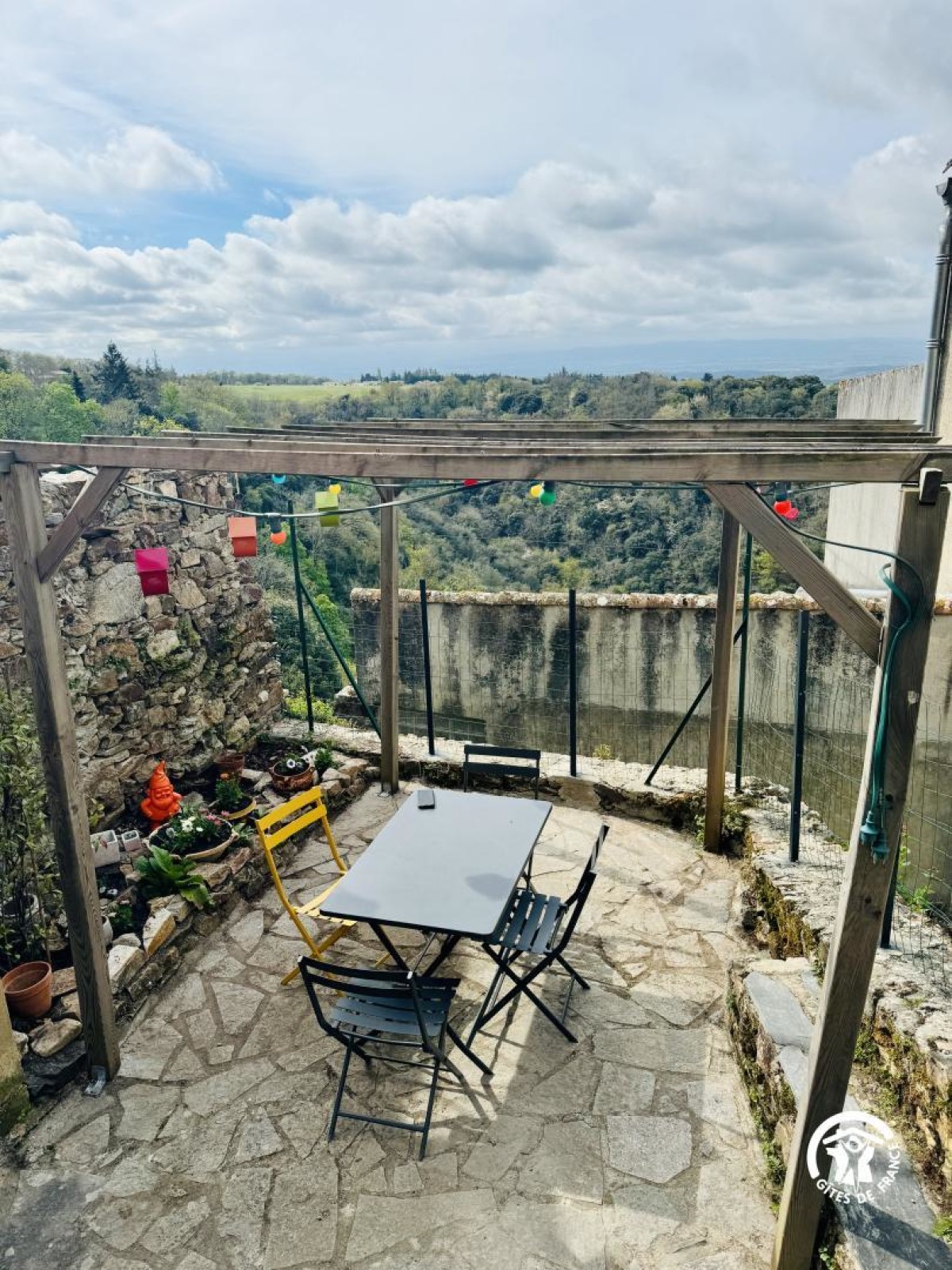 La terrasse est devant le gîte mais non attenante séparée par une ruelle très peu passante.